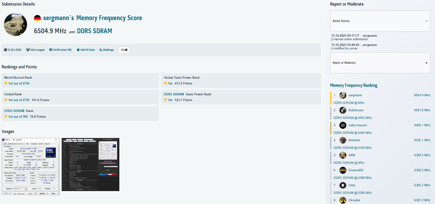 Top 1: https://hwbot.org/benchmarks/memory_frequency/submissions/5909834