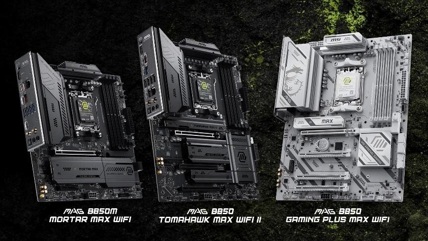 MSI’s latest B850 MAX lineup showcases three standout models: a feature-rich MAG B850 TOMAHAWK MAX WIFI II, the powerful micro-ATX MAG B850M MORTAR MAX WIFI, and the newly introduced all-white MAG B850 GAMING PLUS MAX WIFI. Each board features refreshed designs, expanded connectivity, and greater flexibility for modern PC builds.