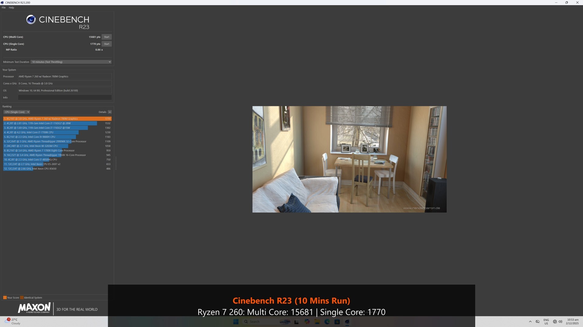 Next up is Cinebench R23, where the mini PC achieves a multi core score of 15681 and a single core score of 1770.