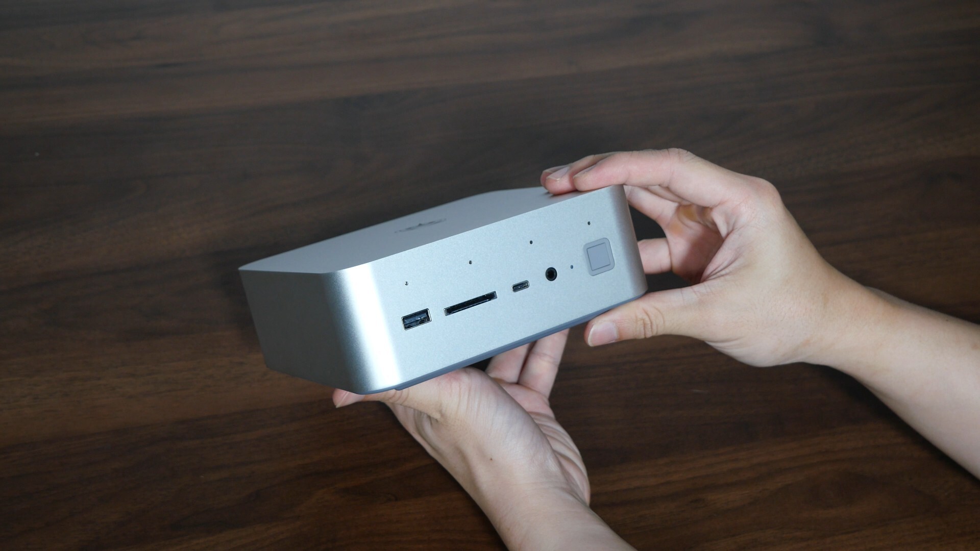 In the front I/O connectivity department, Beelink's included a USB 10Gbps Type-A port, a SD card slot, a USB 10Gbps Type-C port, a 3.5mm audio jack as well as a power button that comes with an integrated fingerprint reader.