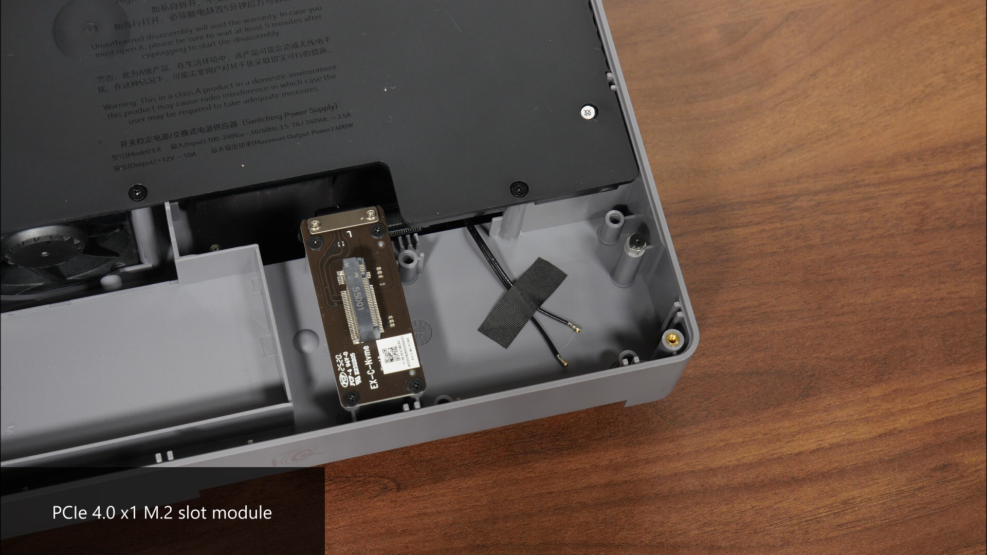 The dock also comes with an additional PCIe 4.0 x1 M.2 slot that can be used to install an additional M.2 NVMe drive. If you’d like, you can swap out the M.2 drive slot module for a M.2 WIFI slot module instead - this said WIFI slot module comes included with the EX Pro.