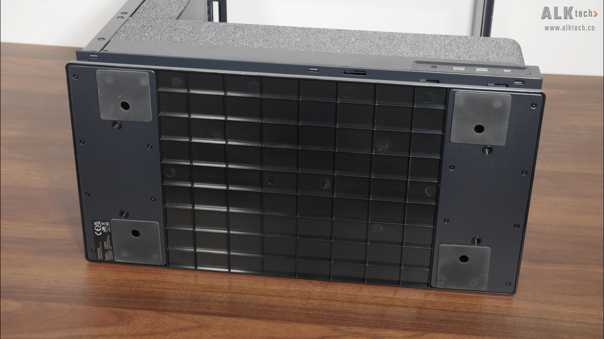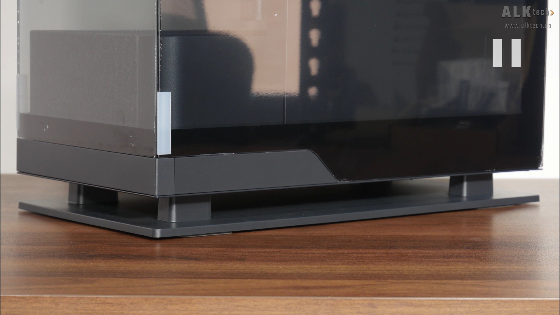 Over on the bottom of the case, we get plastic feet on all four corners of the case that terminate in a rectangular slab of plastic, which makes the Evolv X2 Matrix look as if it’s standing on stilts. Such a design helps airflow along, by creating space for the bottom intake fans to suck fresh air into the case.