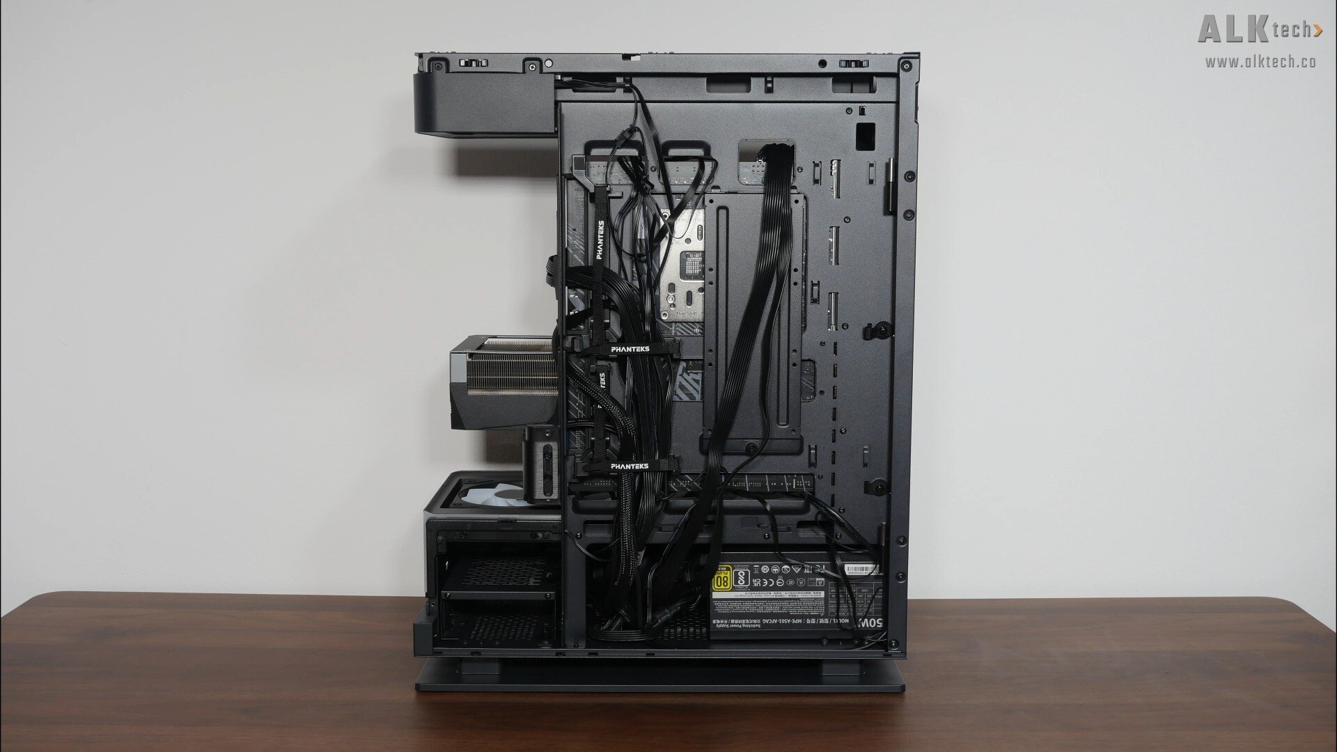 With the panel out of the way, we get full access to the bottom chamber of the case, which houses the power supply unit. In case you’re wondering, the Evolv X2 Matrix has 250mm of depth clearance for a PSU.