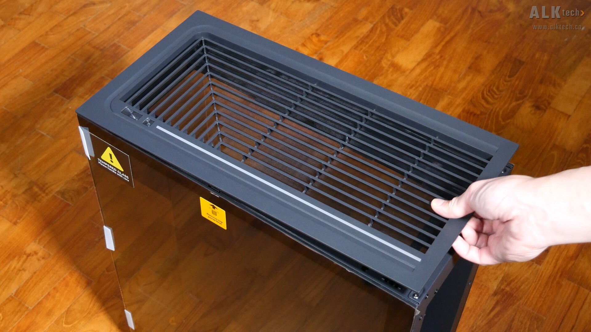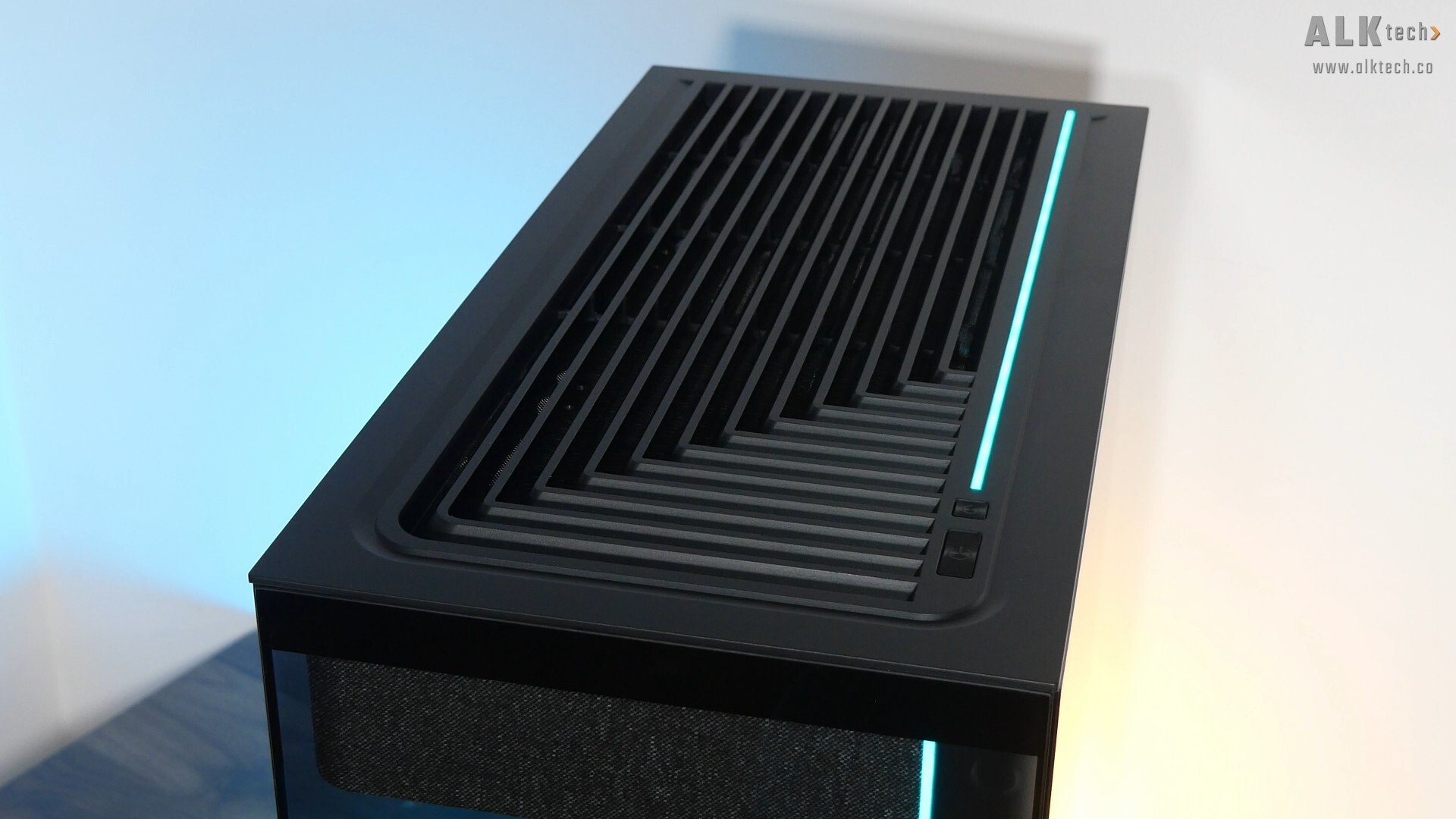 Like the original Evolv X2, the Evolv X2 Matrix has L-shaped ventilation openings for a top mounted radiator or fans, where these slats have been angled in a way to direct any hot exhaust air away from the end-user (assuming that you have the PC placed on your right). Phanteks has also included an illuminated RGB strip that runs along the long edge of the top panel and terminates where the reset and power buttons are.