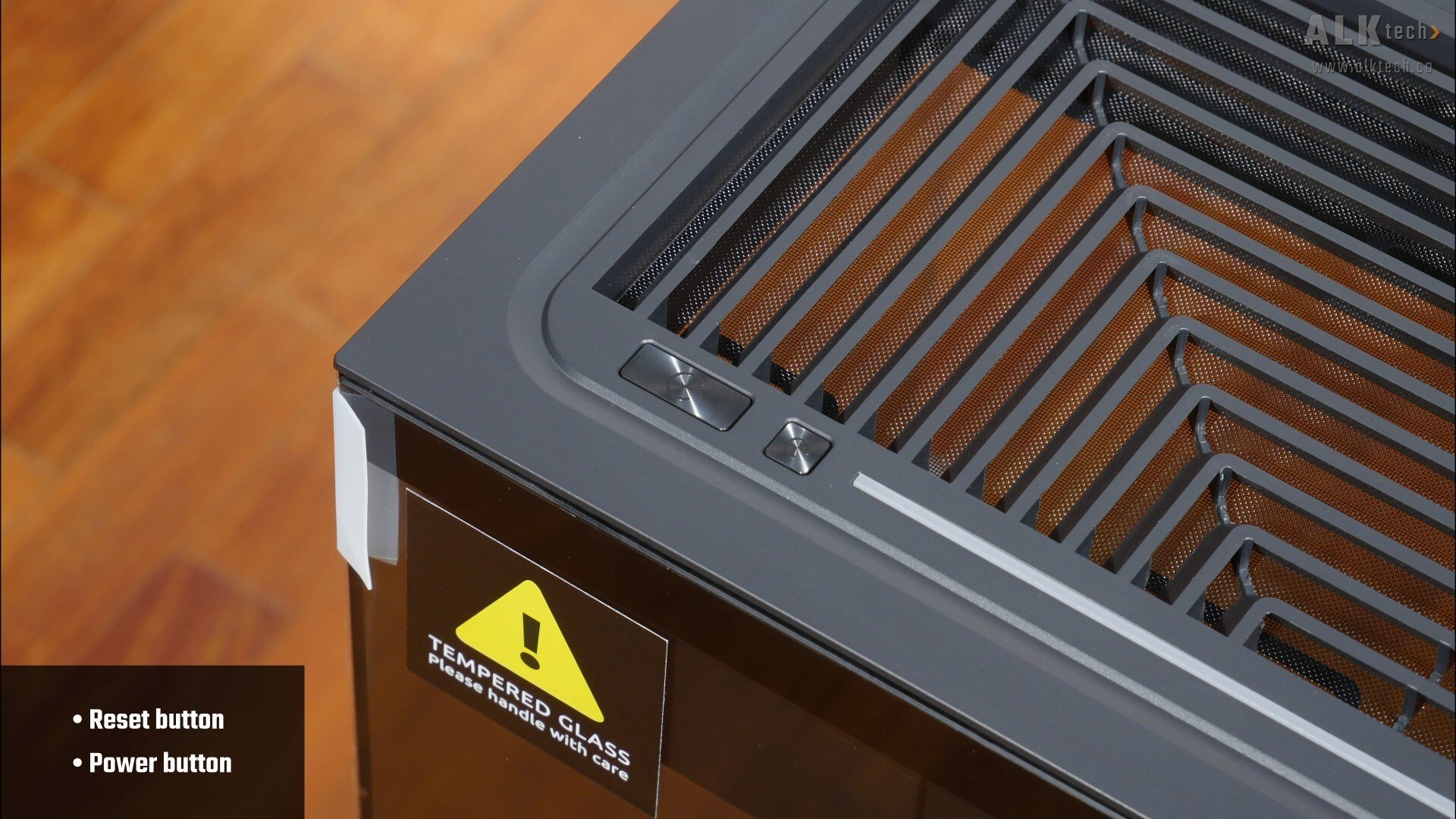 The power and reset buttons of the case are located on the top panel, and in terms of front panel connectivity, we get a 3.5mm headphone and microphone combo jack, two USB 3.0 Type-A ports as well as a USB 3.2 Gen 2x2 Type C port situated beneath the bottom edge of the left tempered glass side panel. Do note that the case does not come with a hard disk activity indicator light.