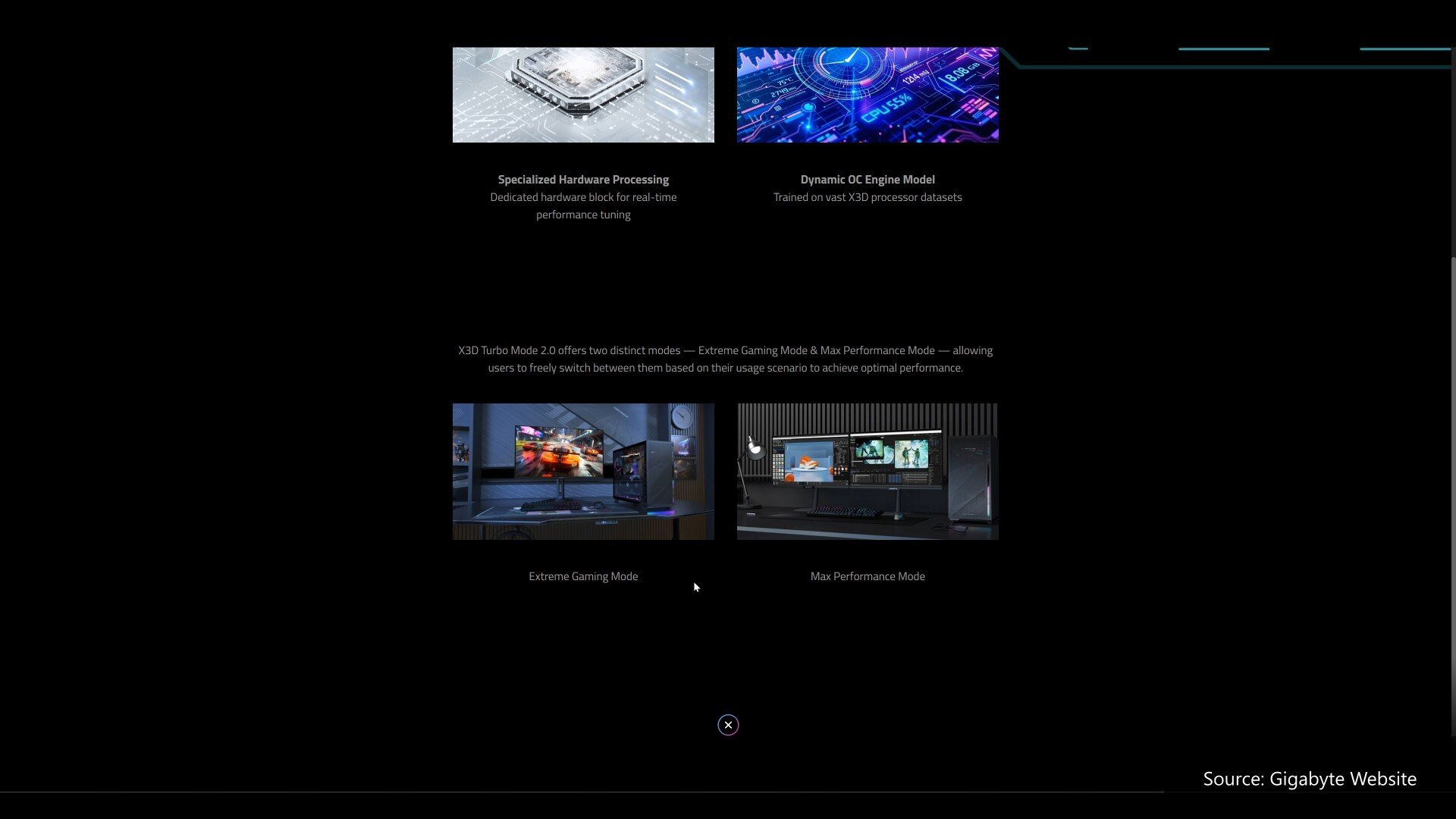 Finally, like the Gigabyte X870E AORUS ELITE X3D that I covered a few weeks back, the X870E AORUS MASTER X3D ICE comes with a new feature that Gigabyte terms "X3D TURBO MODE 2.0". According to their marketing spiel, this feature can boost the performance of AMD’s gaming-oriented Ryzen X3D chips with just a click in the BIOS - as per Gigabyte’s website, we get a “Max Performance” and “Extreme Gaming” setting that can be enabled from within the BIOS, where they essentially apply a set of pre-determined overclocking values to your processor - we get a certain amount of increase in max boost clock, the application of a certain value of curve optimiser and so on. For the “Extreme Gaming” setting in particular, from what I understand, it’ll disable simultaneous multithreading, or SMT for short, which can help with gaming performance on AMD’s X3D processors.