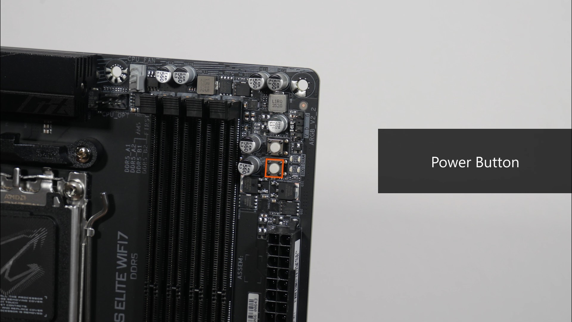 Some interesting features that the board comes with – back at the top of the motherboard, we get a reset button, also termed a multi key button by Gigabyte, which can be reprogrammed from within the BIOS to serve other purposes. We do also get a power button that allows you to power up your PC - this should come in handy especially when troubleshooting PC start-up issues.