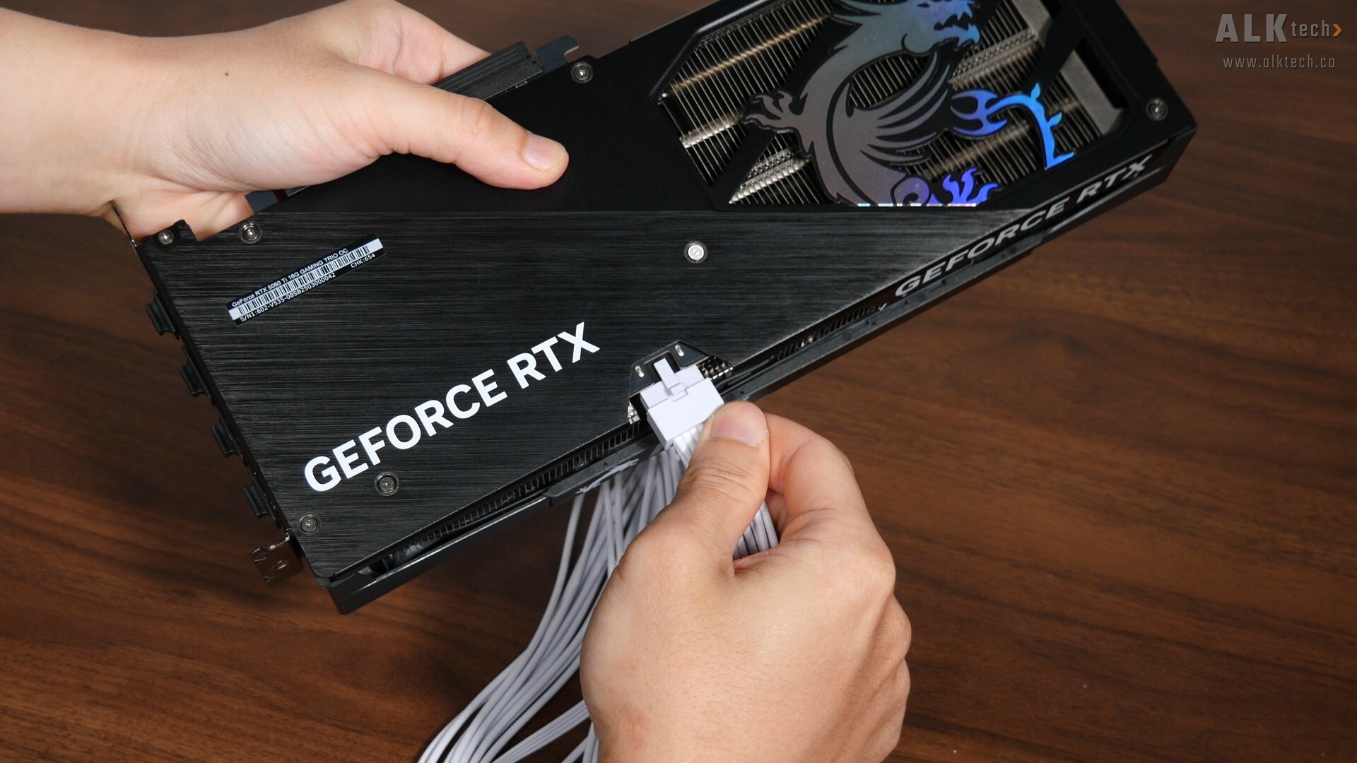 A feature to point out about the graphics card power cable’s 12V-2x6 connector, it has a dual-colour connector design, where the blue portion will fully disappear if the connector's properly inserted into the 12VHPWR connector of your graphics card, as pictured above.