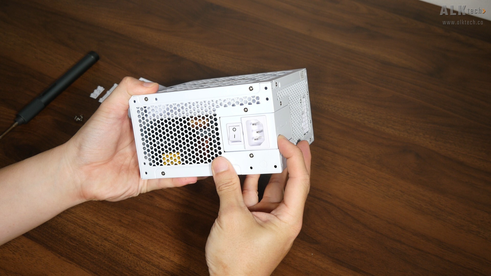 If you’d like to go with the side mounting orientation, you’ll have to adjust the position of the AC inlet accordingly, before installing the corresponding side plate. Once done, cover up the unused 18-pin and 10-pin ATX power connectors with the included dust caps, before installing the PSU into the PSU chamber of your PC case.