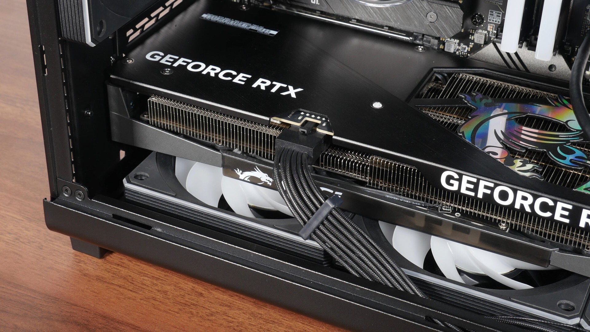 Some features to point out about the PSU cables, Lian Li's included an in-house custom-moulded connector design for the graphics card 12V-2x6 power cable. This is a good move I guess, seeing how the standard design for the 12V-2x6 connector's gotten a really bad rep, with no shortage of stories involving melted connectors due to improper insertion into the corresponding power connectors of power hungry graphics cards, such as those powered by high-end GPUs like the GeForce RTX 5090 and the RTX 4090. In that regard, Lian Li's take on the said connector seems to be pretty sturdy, where even with a significant amount of cable manipulation, I couldn't detect any unwanted movement for the pins contained within the connector housing - this should go a long way in helping to ensure good electrical contact when hooked up to your graphics card.
