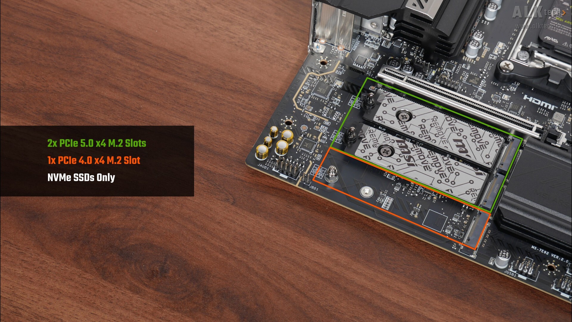 Storage: 2x SATA III, 2x PCIe 5.0 x4 M.2, 2x PCIe 4.0 x4 M.2 (M.2 slots support NVMe drives only)